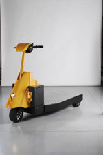 Pianale elettrico per il trasporto merce e per il picking a terra, idoneo a marciare su pavimenti piani ed interni, in esterni solo su asfalto piano. Veicolo a 3 ruote, trazione posteriore con possibilità di scelta tra 3 riduttori, ruote superelastiche antitraccia, conducente a bordo in piedi.